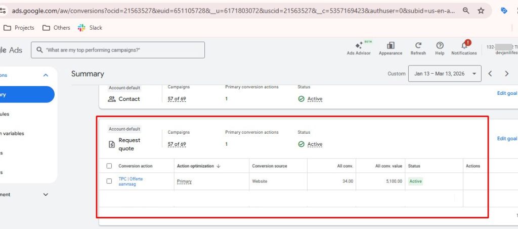 Google Ads Conversions Dashboard Lead Form Request Quote Conversion Tracking Overview